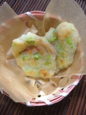おいしく手づかみ食べ 枝豆とコーンのミニチヂミ 幼児食 離乳食後期 パクパク期 1歳 1歳6カ月ごろ にじいろランド Note園